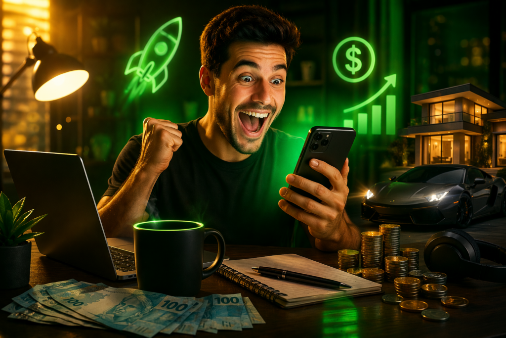 Sem experiência, sem aparecer e sem precisar vender coisas impossíveis. Você só precisa de um celular, internet e um método simples que realmente funciona.